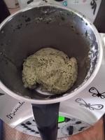 Aggiungere la farina, l'olio e il sale, impastare 1 min., boccale chiuso coperchio chiuso"coperchio chiuso" , vel. Spiga velocità spiga"velocità spiga" , senza misurino. Aggiungere la rucola e il parmigiano, impastare 1,30 min., boccale chiuso coperchio chiuso"coperchio chiuso" , vel. Spiga velocità spiga"velocità spiga" , senza misurino.