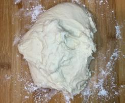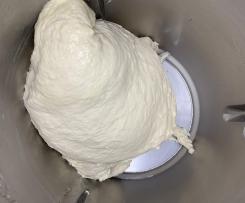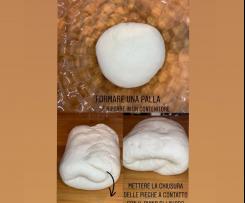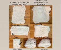 3. Procedere ad allungare l'impasto, con le dita, l'impasto fino ad ottenere un rettangolo e procedere con le pieghe. Ripetere il procedimento per tre volte, mettere la chiusura delle pieghe in basso e formare una palla.