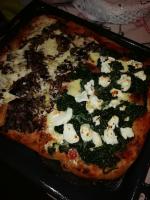 - Togliere dal forno e farcire a piacimento aggiungendo ancora un po' di salsa di pomodoro ed il restante (io ho fatto mozzarella, funghi, wurstel su una metà e l'altra metà bianca quindi solo mozzarella, pesto di basilico e pomodorini datterino tagliati a pezzi);