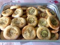 impasto perfetto, sulla metà ho messo una rondella di zucchina, sulle restanti solo la farcia di cipolla, olio e semi di sesamo!!! Fantastiche!!!