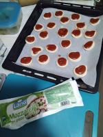 - Dopo avere fatto tutte le forme ricoprire con la salsa al pomodoro condita con l'origano e sopra le mozzarelle;