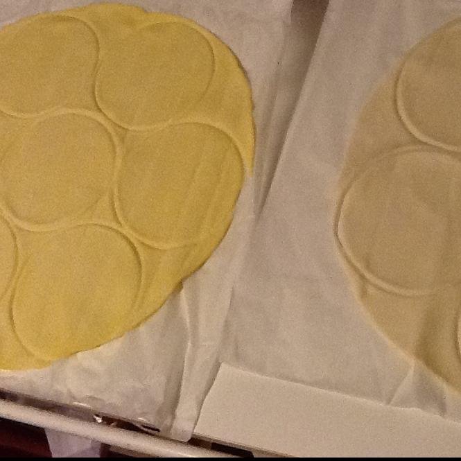 Tirare due dischi di pasta sfoglia e ricavare dei cerchi di uguale dimensione (io ho usato quella pronta perchè non avevo tempo!).