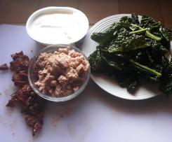 "coperchio chiuso" - Nel frattempo preparate la farcia scolate bene il tonno dal olio in eccesso e i pomodori secchi formaggio spalmabile e cavolo nero già sbollentato