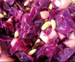 - Aggiungere alla verza scolata i pinoli, la mela (sgocciolata dal succo di limone), l'uvetta strizzata