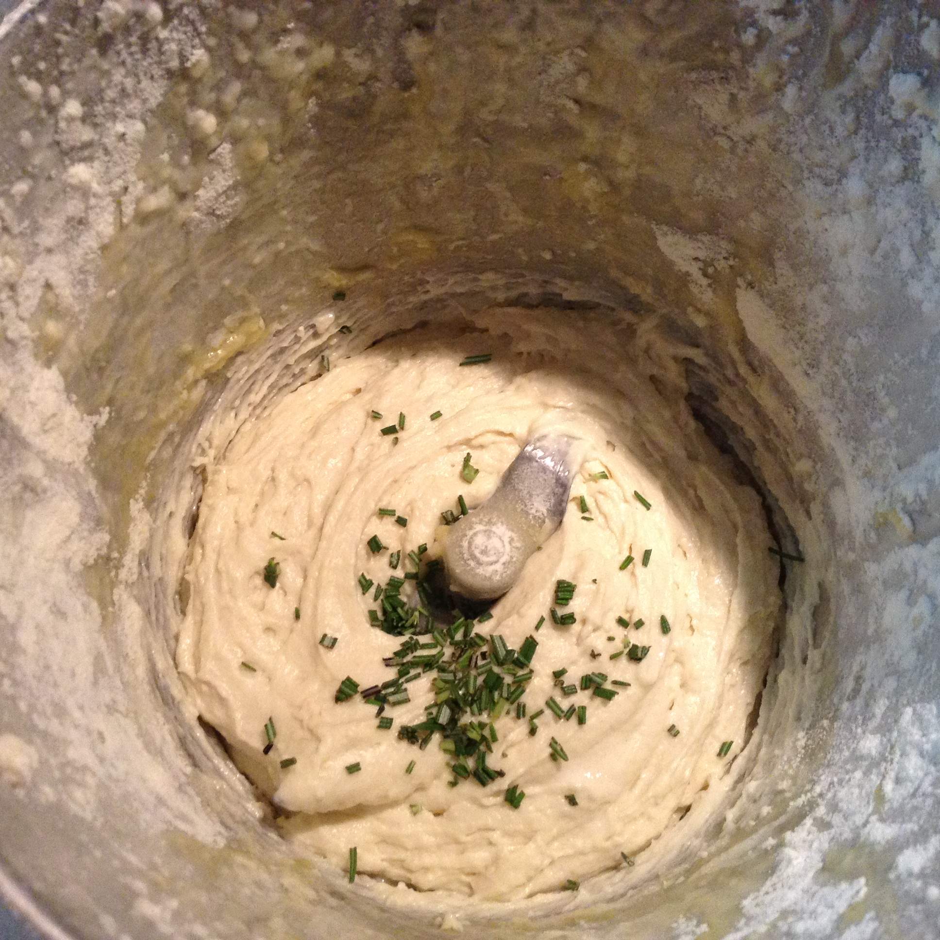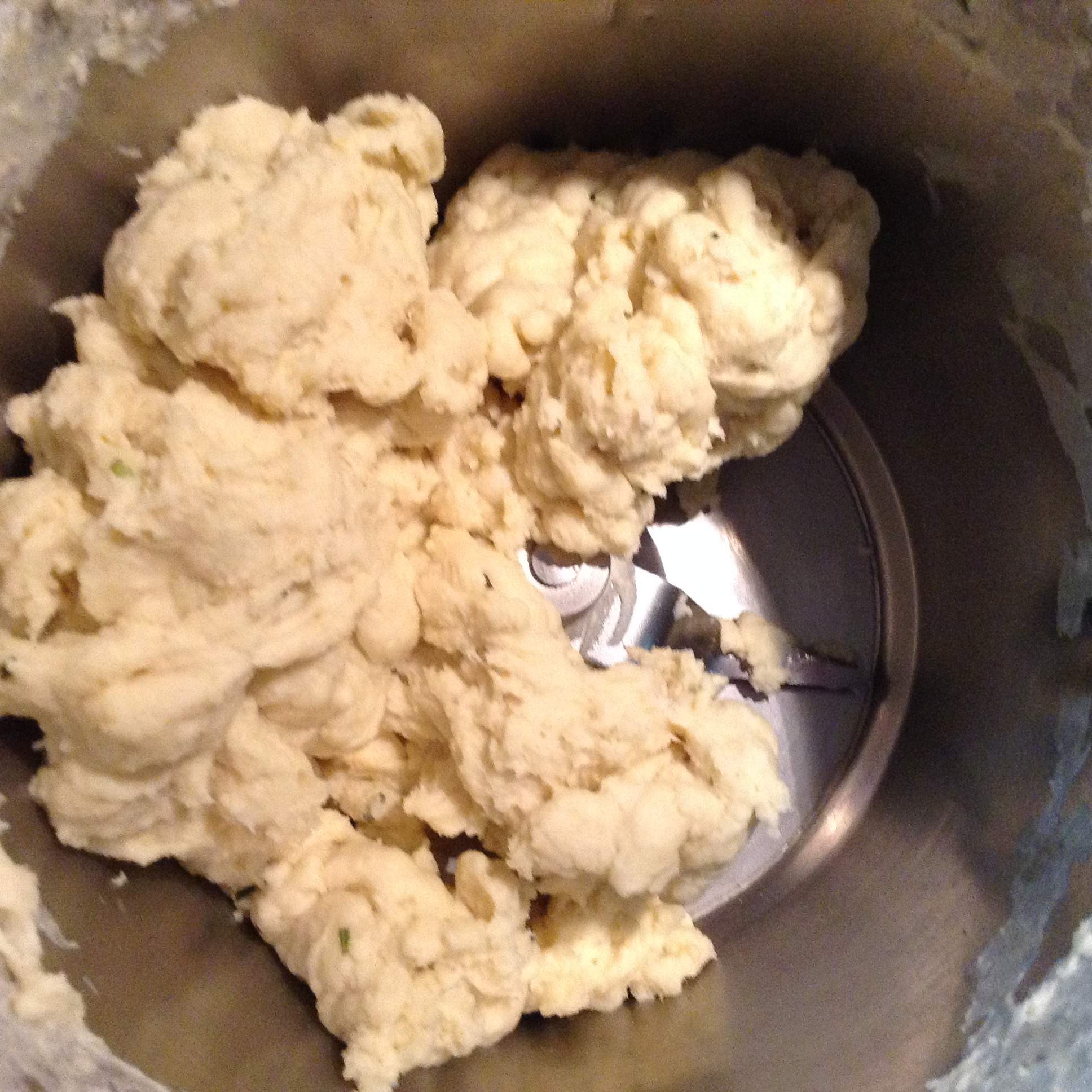 5. A questo punto aggiungere il trito di rosmarino, il sale e metà mix di farina rimasta, impastare 2min/vel spiga