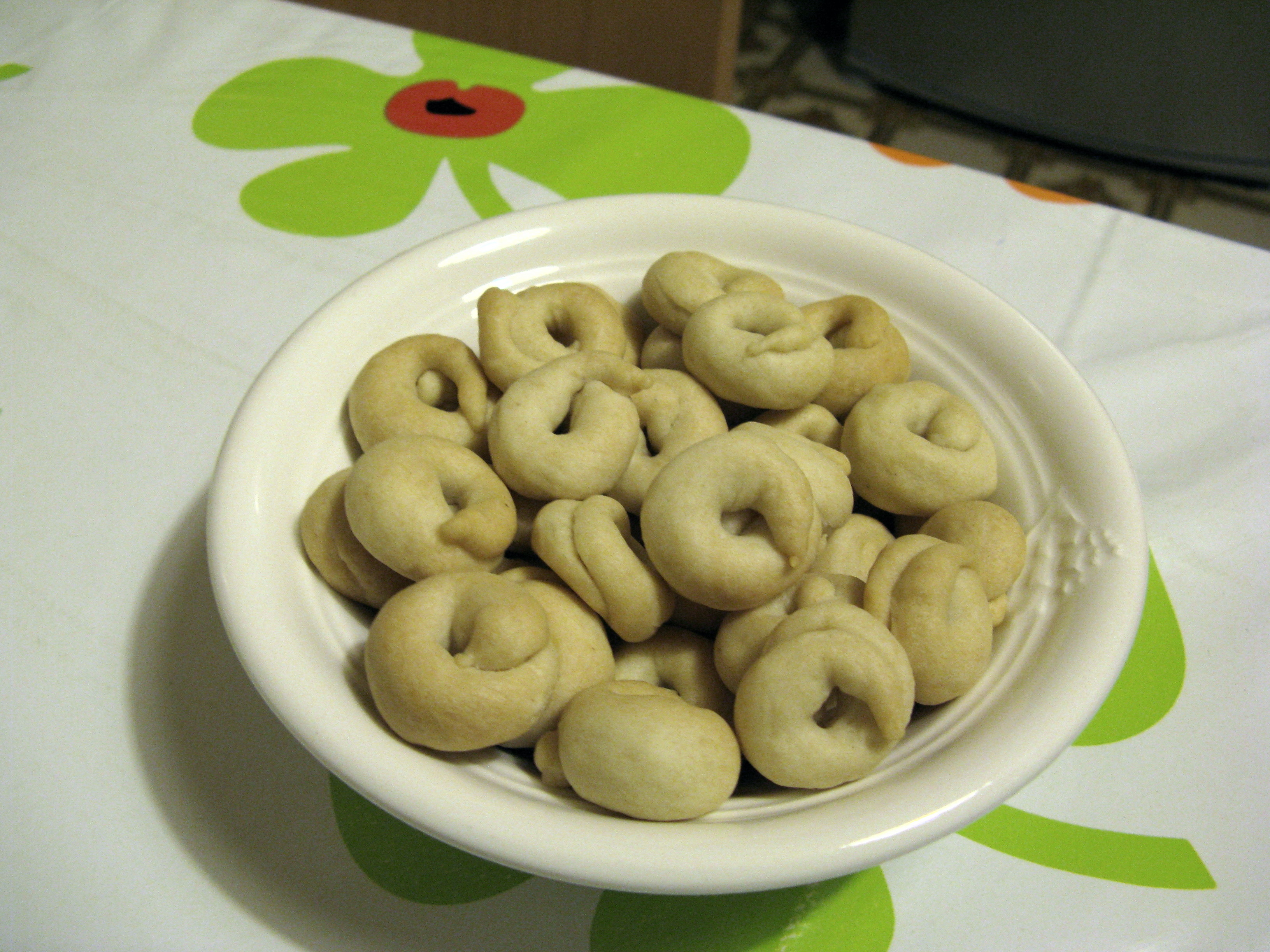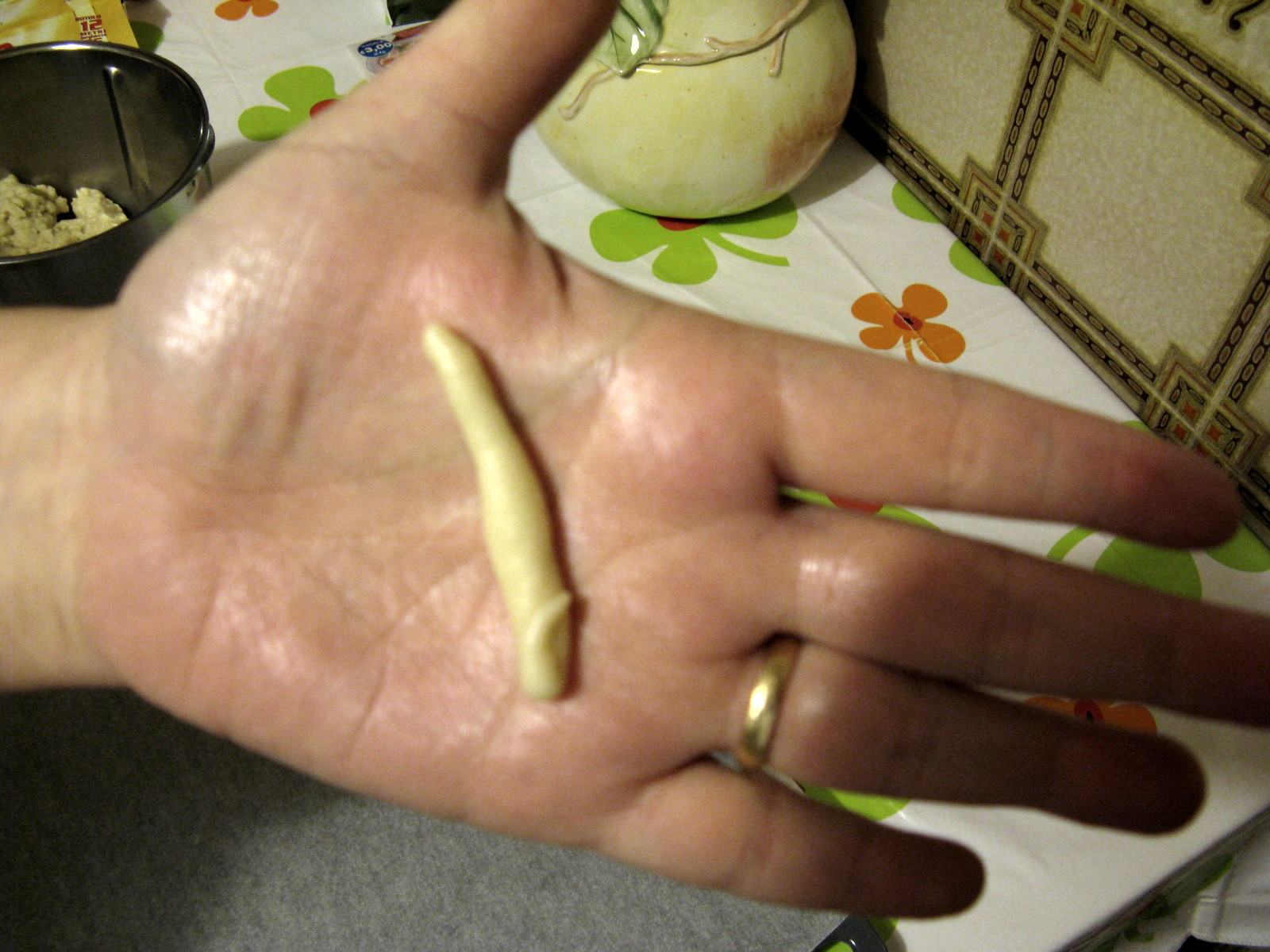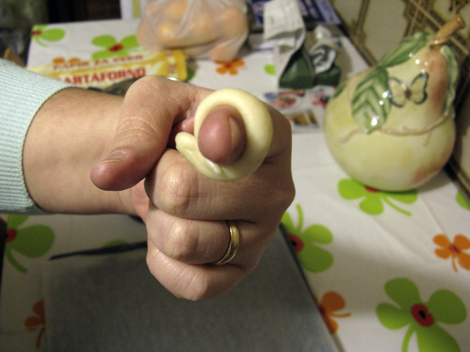 "velocità spiga" .Prendere piccoli pezzi di impasto, ricavarne dei cilindretti e chiuderli sul dito, dando la forma dei tarallini.