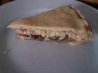 Se utilizzate le sottilette, ne mettete una spezzetata sulla base dopo aver bucherellato e l'altra fetta spezzettata poco prima di mettere l'uovo sbattuto.