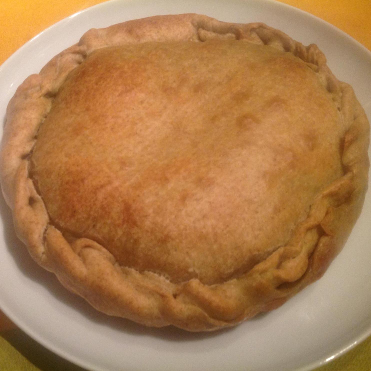 8. Arrotolare i bordi della pasta in modo da chiudere la torta e formare una sorta di cornicione.