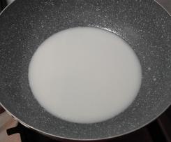 Mettere in frigo per 3-4 ore fino a quando si dividerà in 2 parti (la crosta in superficie è burro di cocco e, il liquido sottostante è il siero o latticello). - Filtrare il burro e trasferire in una padella a fiamma dolce.