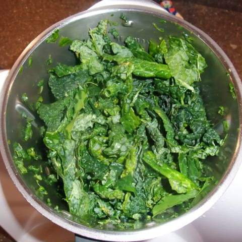 - 250 g foglie di cavolo nero, (150 g di foglie private della nervatura centrale)