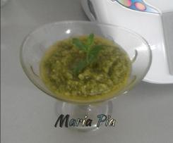 È un pesto vagamente agrodolce. La quantità di rum è a gusto personale .Variando la qualità di menta si può ottenere un aroma più o meno accentuato.