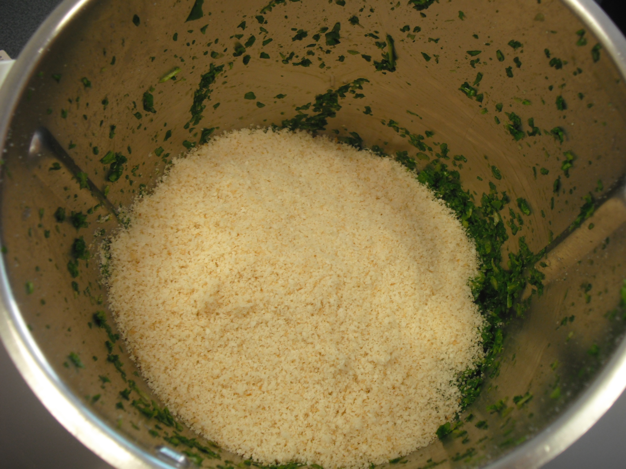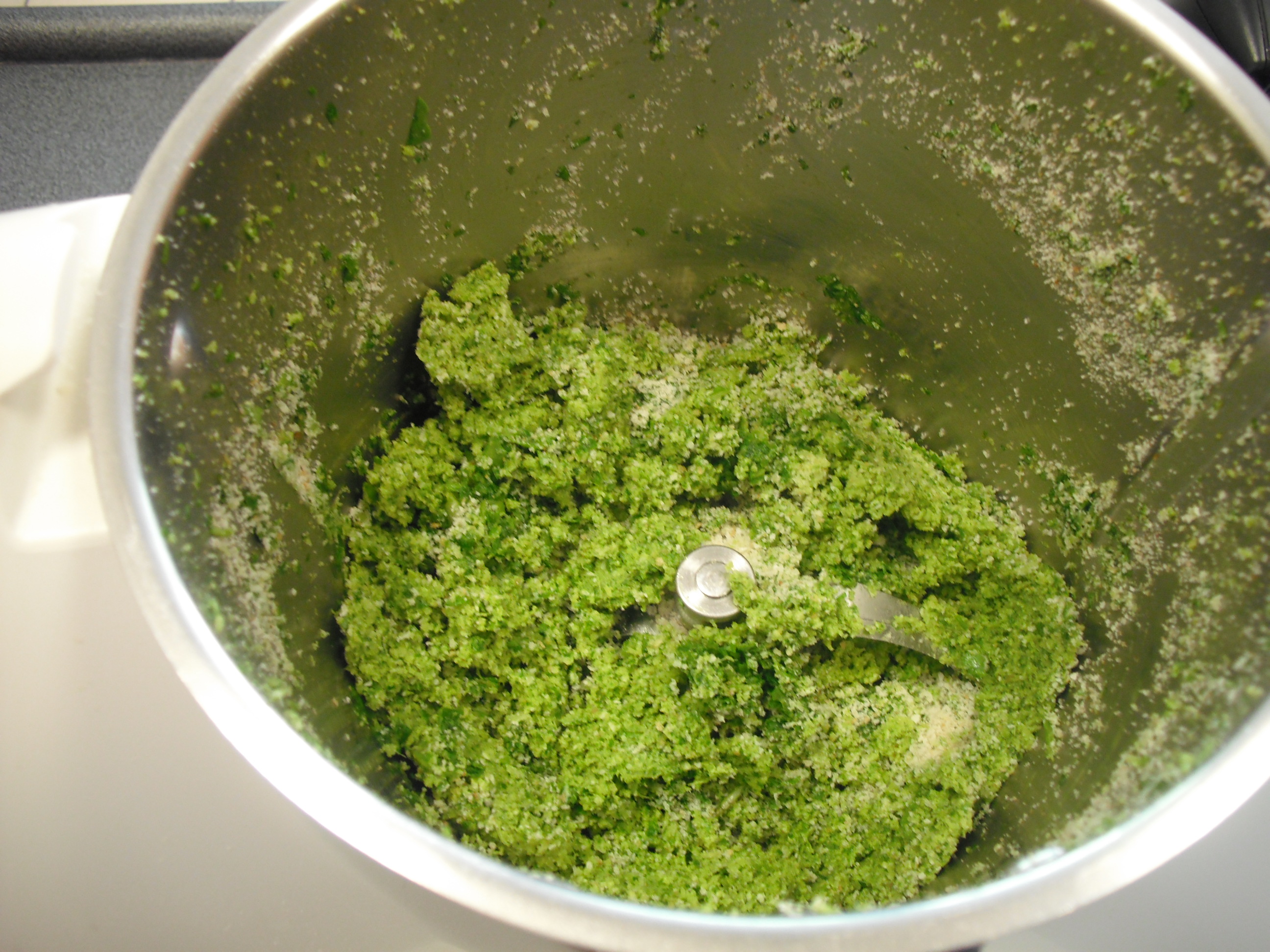 - Aggiungere il pecorino grattugiato e il pane e frullare: 10 sec./vel. 7;