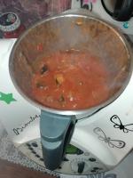 5. Per finire aggiungere la passata di pomodoro e il sale. Cuocere. 30 Min. 100° Vel. 1[/b].