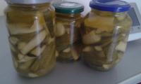 Quando sono ben fredde, sistemate le zucchine nei barattoli (l'ideale sono da 250 g) e copritele con il liquido agrodolce.