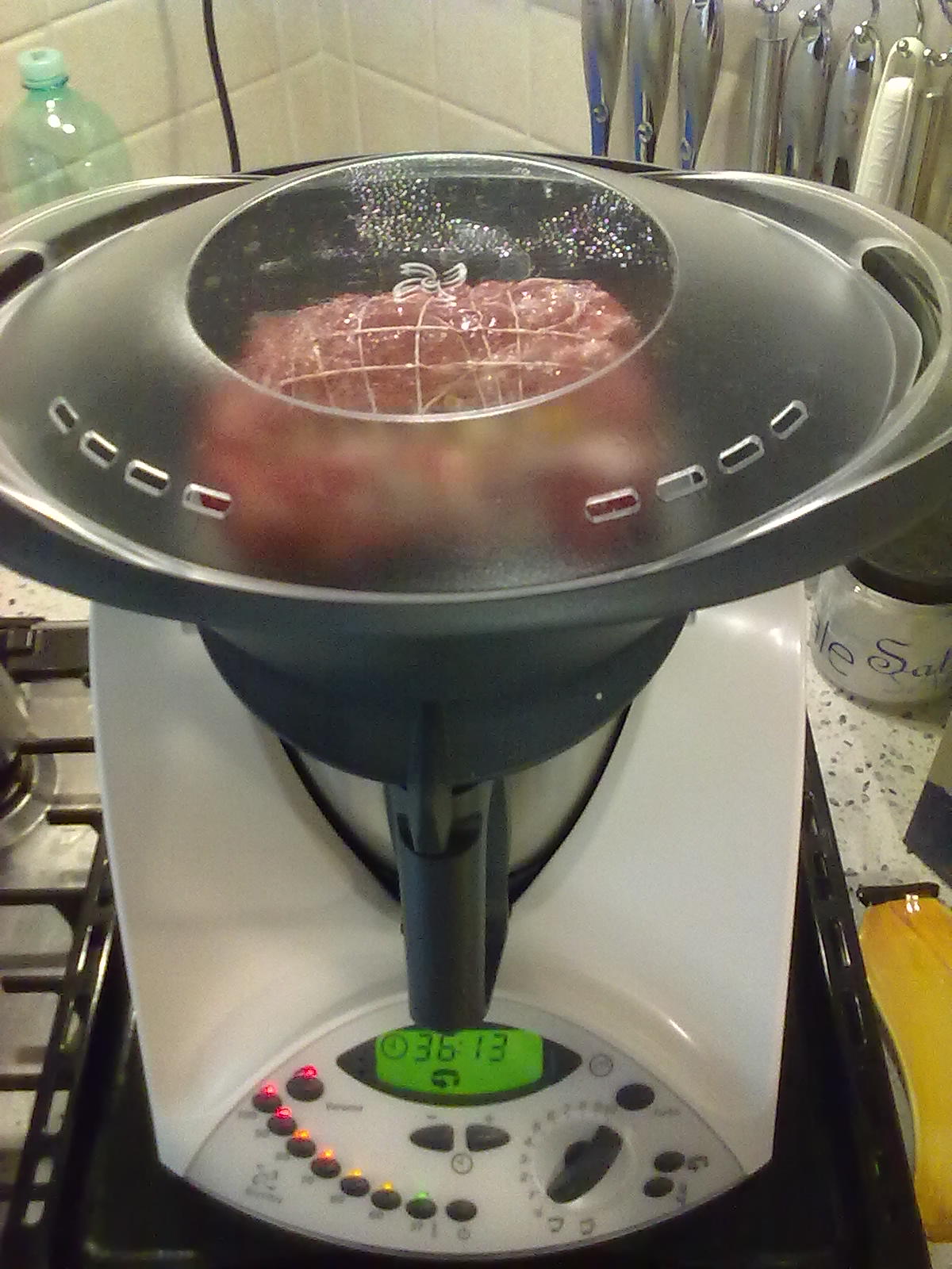 "velocità soft" mettere il trancio di arista nella parte inferiore del Varoma e posizionarlo sul bimby.