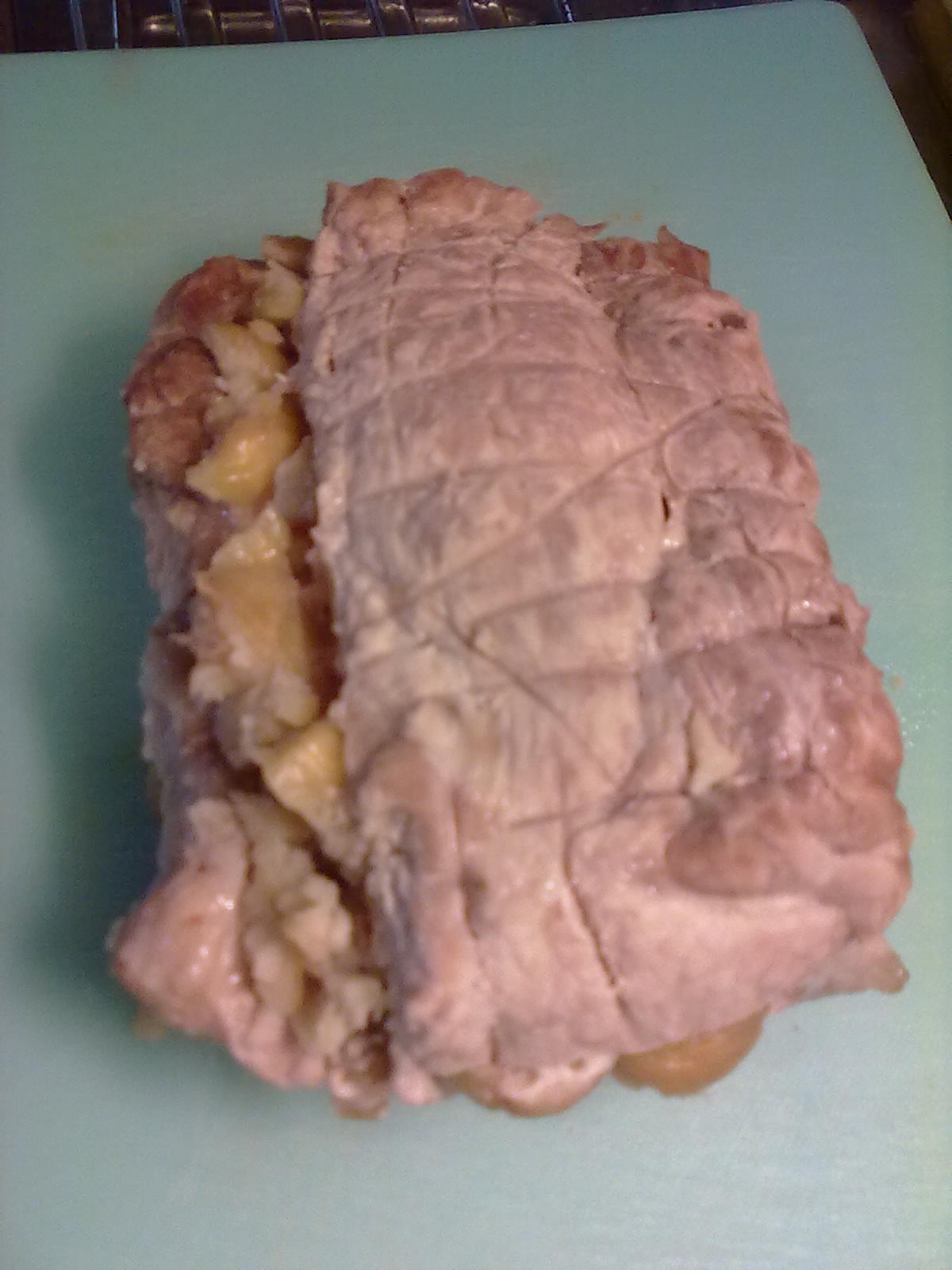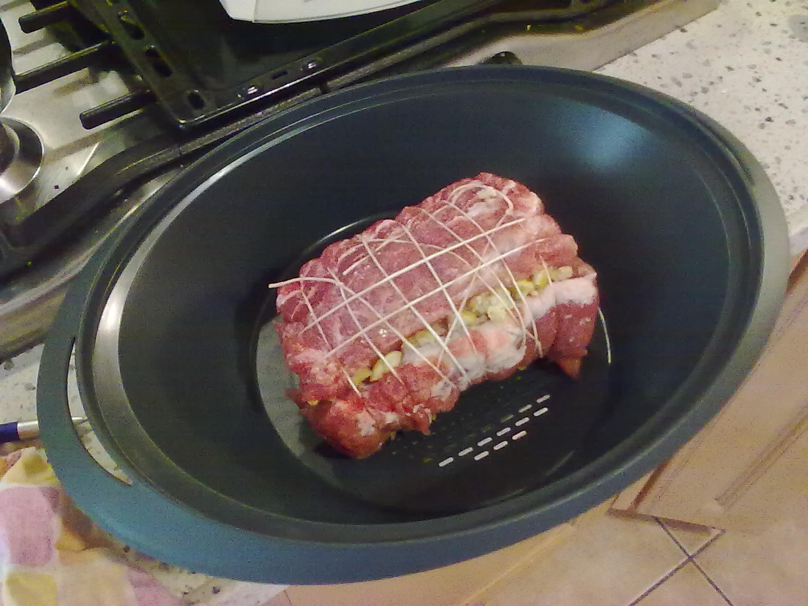 "coperchio chiuso" le castagne restanti intere.togliere lo spago, tagliare il trancio a fette e condire con il sughetto del