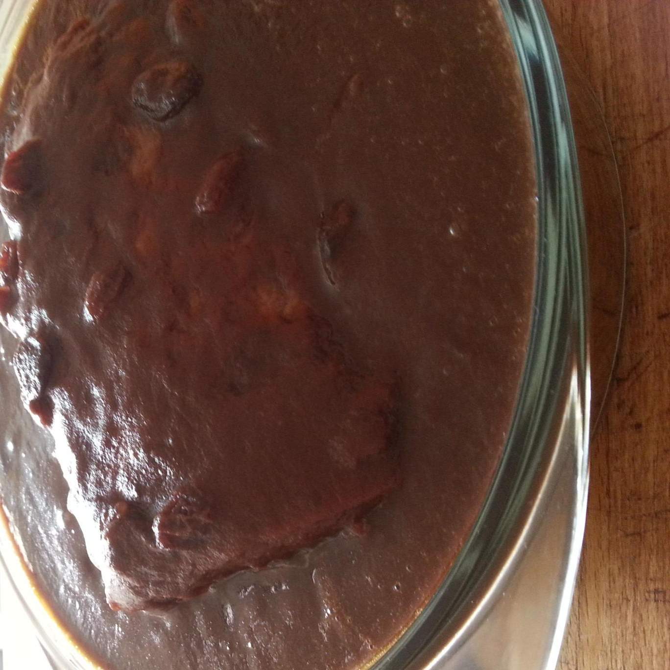 - Mettere la carne nella campana del varoma e trasferire il vino di cottura nel boccale, aggiungere il sugo della marinatura filtrato, unire anche le verdure della marinatura, aggiungere tutti gli altri ingredienti tranne le mele, le uvette e il miele, posizionare il varoma con la carne e cuocere 120min/varoma/vel2 (bisogna impostare 2 volte 60 min);