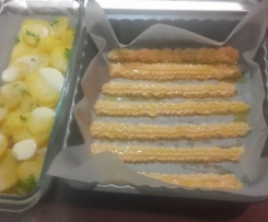 Condire con olio sale e pepe, infornare con le patate 15 Min. 180* forno ventilato fino a doratura (quindi regolatevi voi col vs forno).