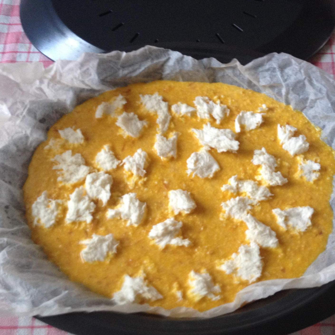 Foderare il vassoio del Varoma con carta da forno, bagnata e strizzata, poi versarvi dentro il composto, aggiungere la mozzarella a pezzetti, ricoprire con un foglio di carta stagnola e coperchio.