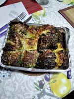 8. Mettere un po' di questo composto su ciascuna foglia di verza, arrotolare e disporre gli involtini in una teglia imburrata.
