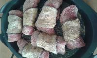 "coperchio chiuso" mettere l'acqua il vino il pepe e la cipollina e far cuocere a varoma per 25 minuti. Servire gli involtini con il sughetto rimasto filtrato. Visto che useremo il vassoio varoma si può approfittare per far cuocere contemporaneamente nel cesto qualche pezzo di patata e/o zucchine che serviranno da contorno.