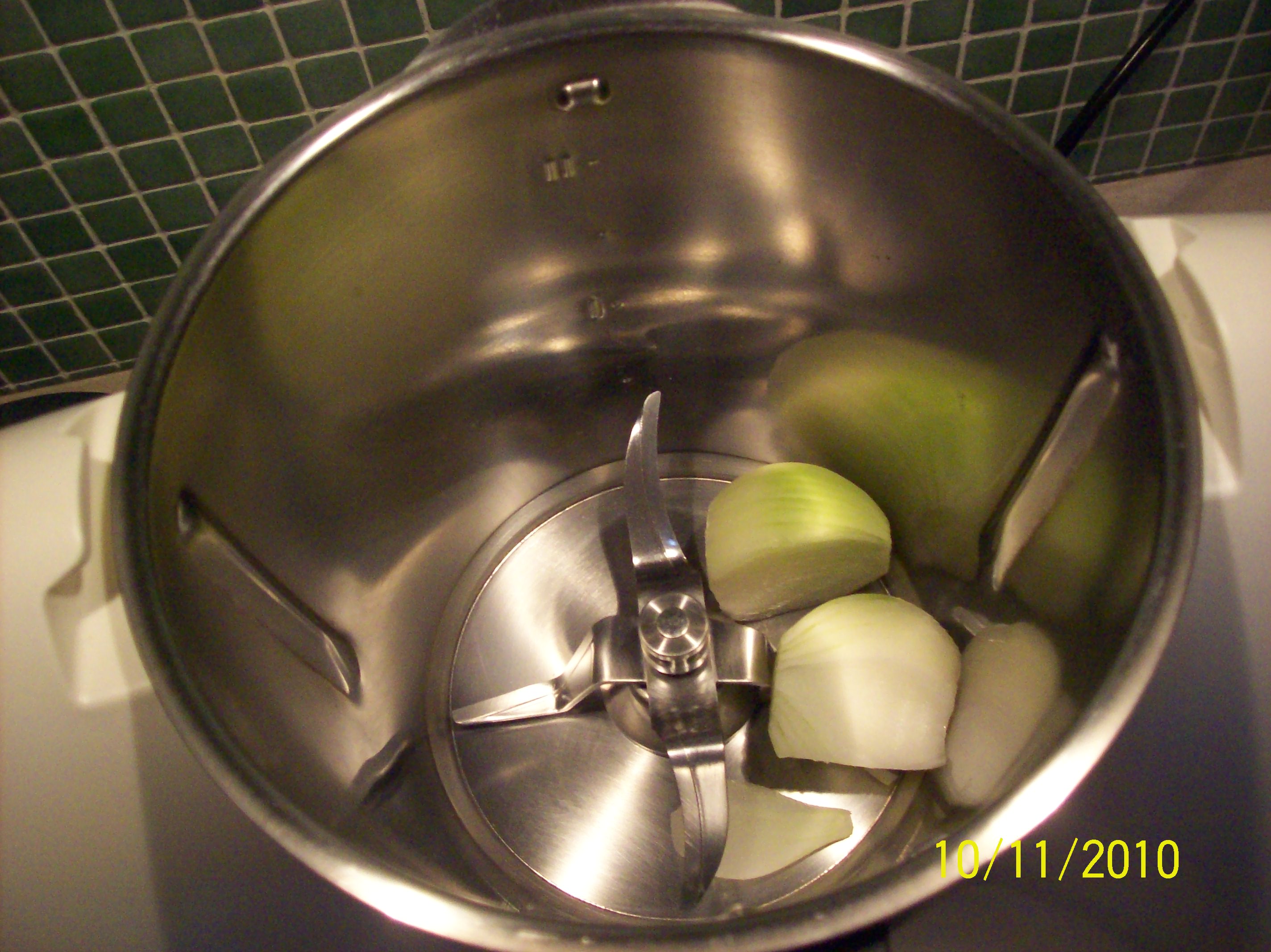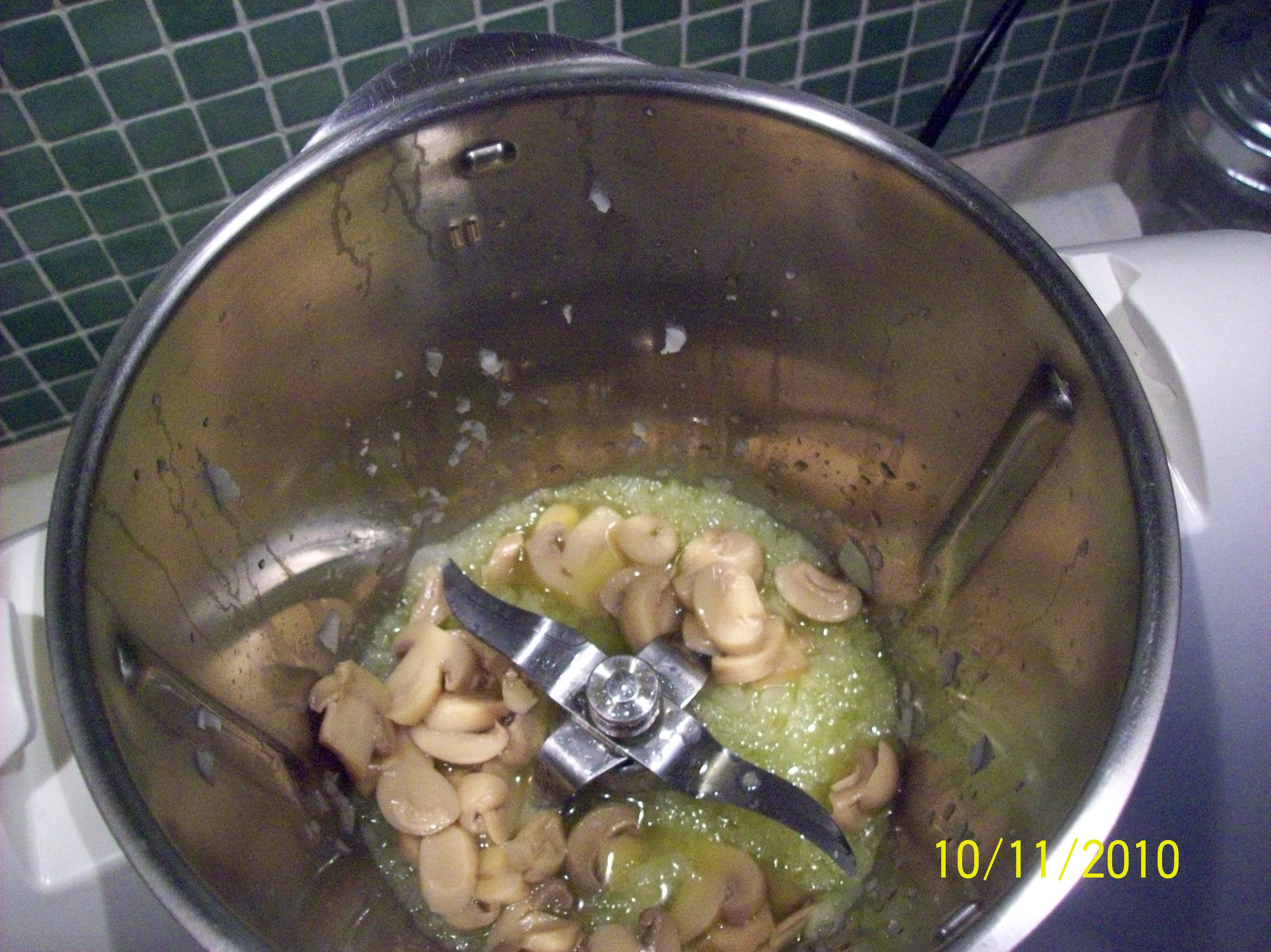 "coperchio chiuso" la cipolla e tritare 5 sec vel 7 agiungere l'olio e cucinare 5 min 100° vel 1aggiungere un po' di funghi non (tutti) e fai rosolare 1 min vel1