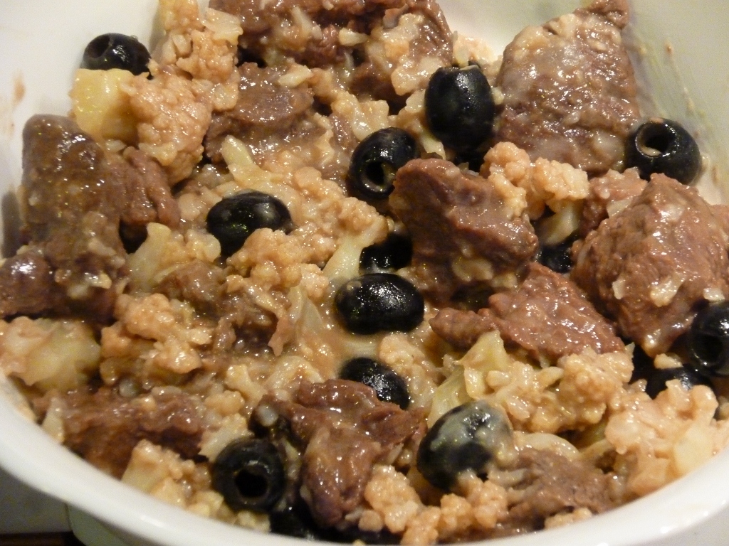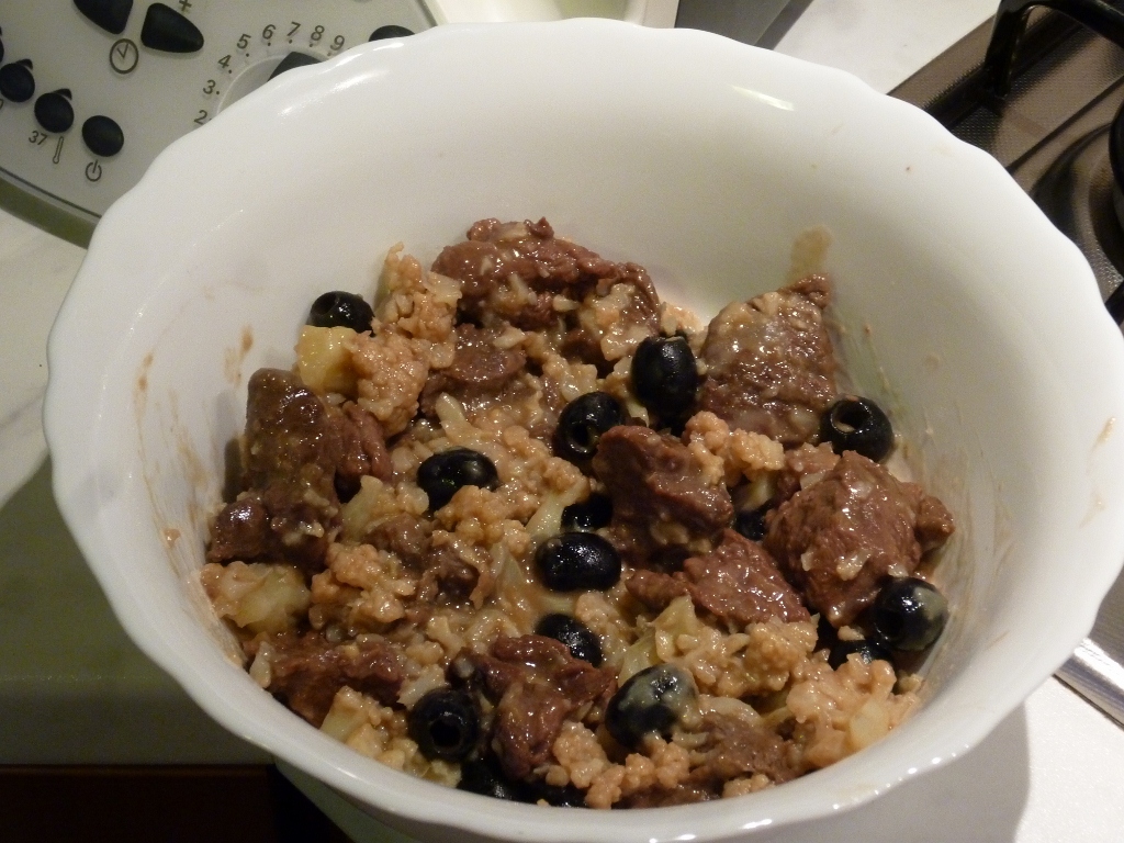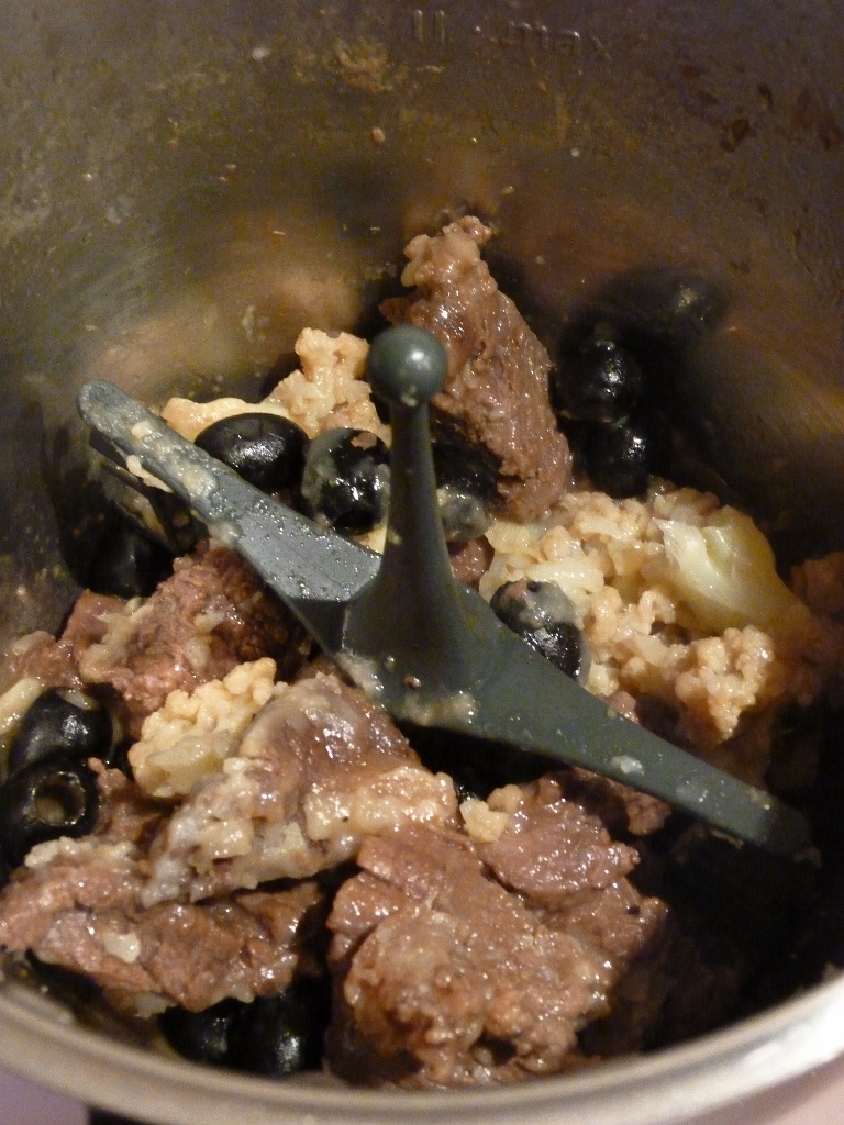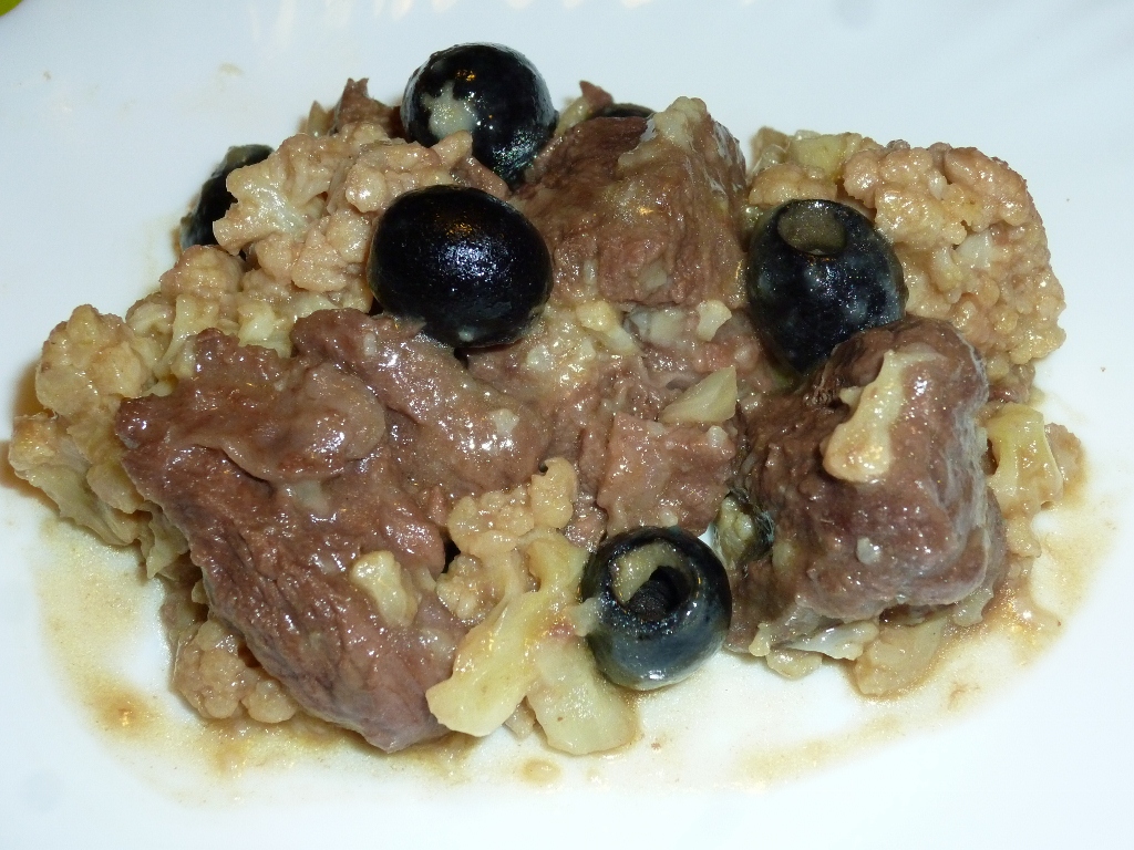 "velocità soft" . - Aggiungete le olive, il cucchiaio di farina , il pepe, aggiustate di sale (io non ne ho messo perché il dado è molto saporito), e finite di cuocere, 15 min. 100°