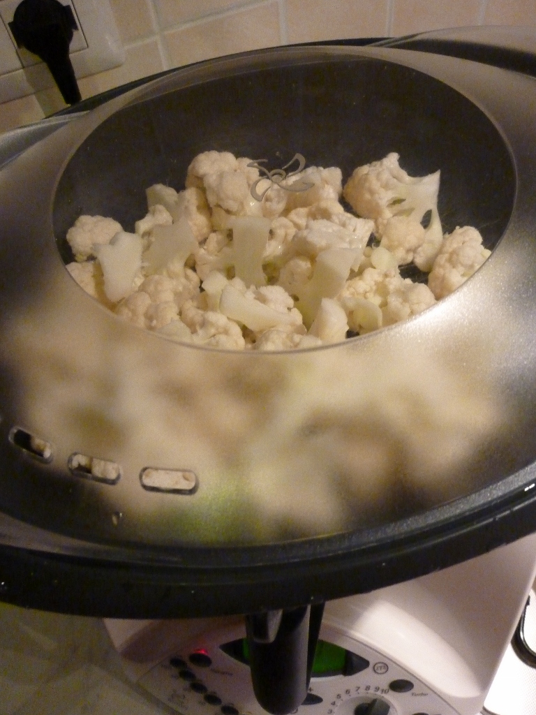 "coperchio chiuso" e chiudetelo; sistemate il cavolo tagliato a cimette nel VAROMA e adagiateci sopra il sedano (assorbe tutto l’odore del cavolo, non avrete la casa “incavolata”!!Da un consiglio dato da una forumina di qui ), e cuocete tutto per 15 min. a VAROMA,