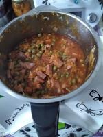 - Poi aggiungere i piselli surgelati e la passata di pomodoro, aggiustare di sale e cuocere per 20 minuti 100° ANTIORARIO Vel SOFT