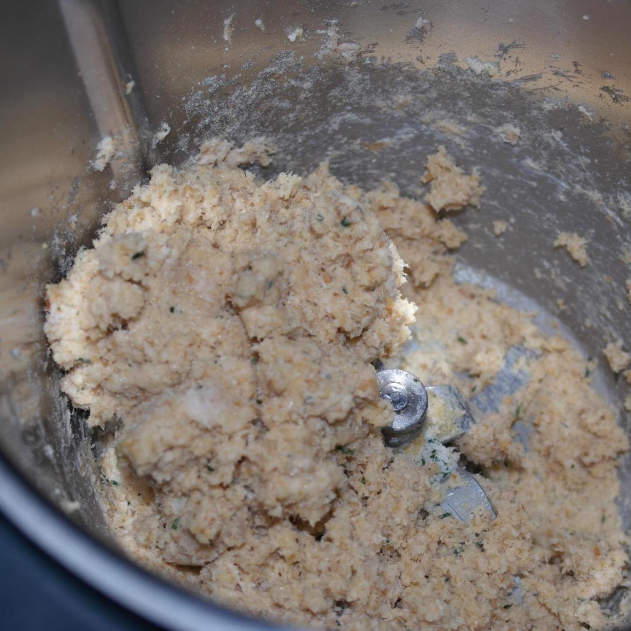 Aggiungere tutti gli altri ingredienti e mescolare fino ad ottenere un impasto bello compatto: 30 sec vel 3-4.
