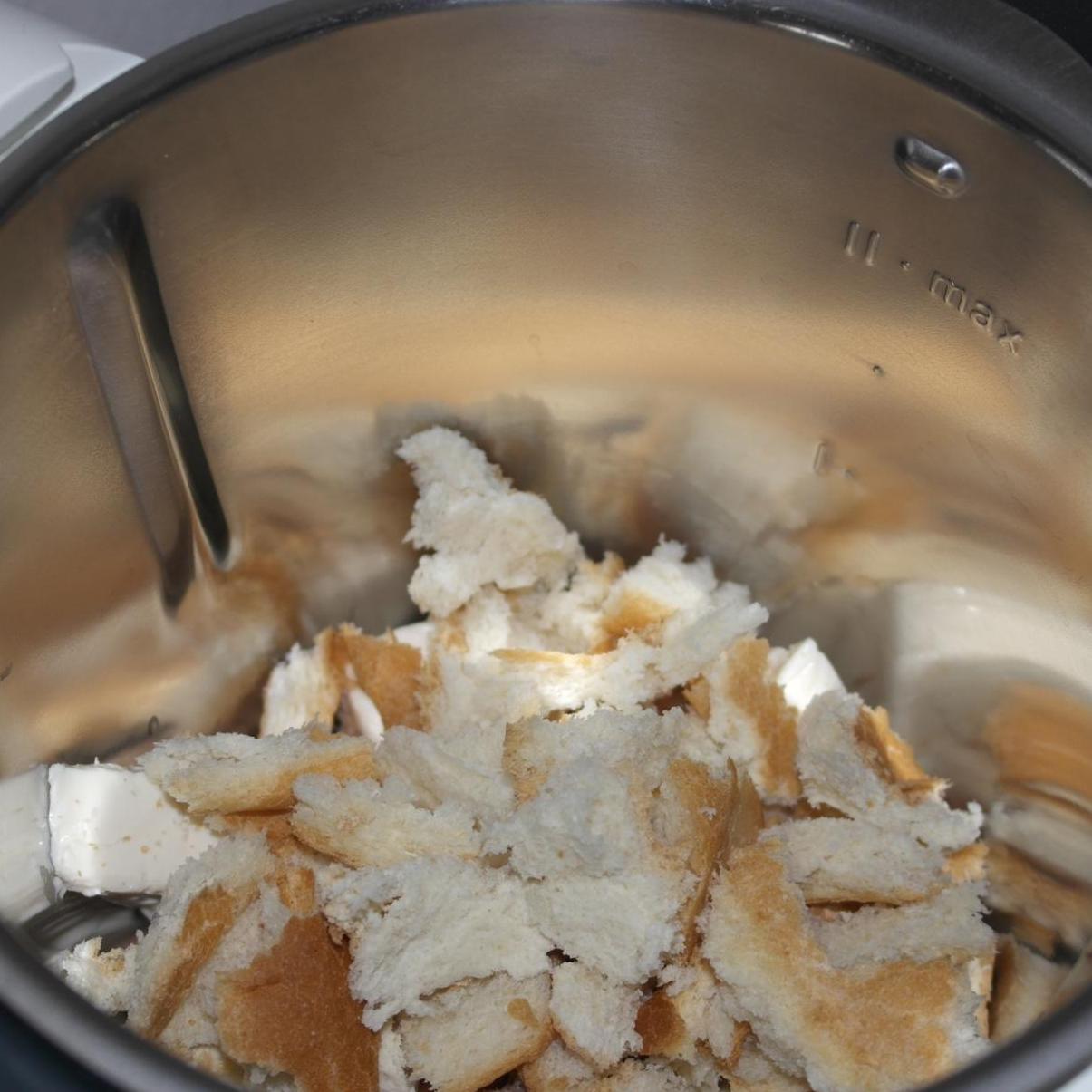 "coperchio chiuso" tonno, formaggini e fette di pan carré fresco (non secco così non avrà bisogno di essere ammollato nel latte), tritare: 20 sec vel 4