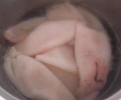 "coperchio chiuso" acqua, limone, battuto, rosmarino, le seppie e i calamari puliti, chiudere con il coperchio e posizionare il varoma, cuocere VAROMA 25 Min. Vel.