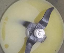 "coperchio chiuso" le bucce, lo yogurt e un po di sale, frullare 20 Sec. portando a Vel. 8. e mettere da parte in frigo. - Soffriggere l'olio e l'aglio 100°C 4 Min. Vel. 1.