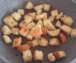 Poi scolare tamponare con carta assorbente. - Tagliare a cubetti regolari il pane.