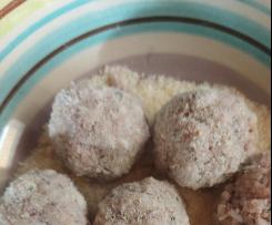 - Traferite il composto in una ciotola e formate delle palline grosse come una noce o poco piu' fate cosi fino a finire l' impasto passatele nel pan grattato