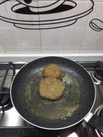 l'impasto risulterà morbido ma si riusciranno a formare i burger che andranno passati nella farina di mais ( si può sostituire con del pangrattato). Friggere i burger nell'olio ben caldo e servire caldi ma d'estate anche freddi o tiepidi con un contorno di valeriana
