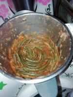 - Aggiungere nel boccale il pomodoro a pezzi o in polpa a piacere, il dado Bimby, i fagiolini e la farina: amalgamare 10 sec.,