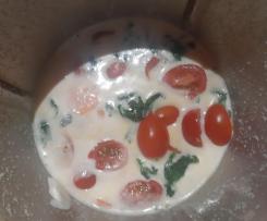"coperchio chiuso" pulito e asciutto mettete uova grana yogurt sale e pepe e amalgamate il tutto per 20 Sec Vel 2 nel frattempo accendere il forno preriscaldare a 180° - A questo punto unite carote selene pomodorini divisi e mescolate il tutto per 10 Sec Vel 2