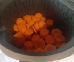 - Per prima cosa cuocere le carote a rondelle mettere acqua fino a coprirle le lame posizionate cestello con carote