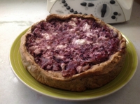 Torta salata ottima, da fare e rifare in questo periodo dove abbonda il radicchio. Ho apportato solo qualche piccola modifica per necessità: tutta farina 1, latte vaccino, 10g olio di riso e 20g evo, spolverata di pangrattato.