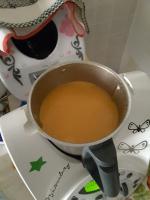 Ho soffritto uno scalogno (tritato con un colpo di turbo e riunito sul fondo) con un cucchiaio di EVO, 3' 100* vel.1, poi ho aggiunto mezzo peperone giallo, patata media e un pomodoro crudo tagliati a tocchetti, 250 gr di acqua e mezzo cucchiaino di dado Di carne bimby e ho cotto il tutto per 20' 100* vel. 1 senza misurino (per evitare schizzi ho appoggiato sopra il cestello!) e alla fine ho frullato il tutto per 20" vel.10. È buona anche a temperatura ambiente.